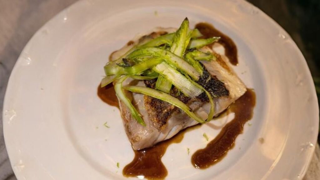 La lubina en filete con hinojo continúa el recorrido gastronómico con un plato delicado y lleno de matices. La salsa aporta un toque distintivo que realza el pescado, acompañado de un puré de patata cremoso, fiel a la línea del restaurante: recetas reconocibles con un giro original.