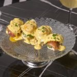 La aventura culinaria comenzó con los Mini benedictinos de salmón y steak tartar, una auténtica delicia. Estos bocados te abren el apetito con una mezcla de sabores que funciona a la perfección. Continuamos con las colitas de gambas en tempura, un bocado potente con un toque picante que no puedes dejar pasar: crujiente por fuera, jugoso por dentro, y con ese punto de intensidad que te hace querer repetir.