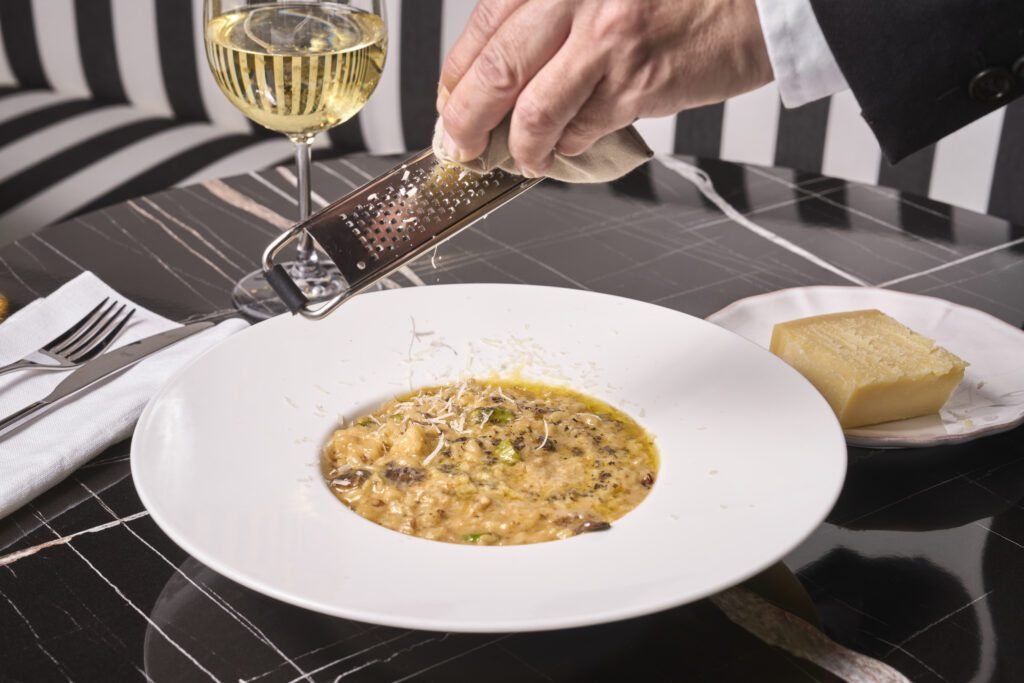 Para los principales, el escalope alla viennese de ternera con salsa tonnata nos sorprendió tanto por su generoso tamaño como por su sabor impecable. También probamos el falso risotto —en realidad hecho de pasta— acompañado de queso que te enamorará desde el primer bocado, una propuesta creativa que demuestra la versatilidad de la cocina de Giardino.