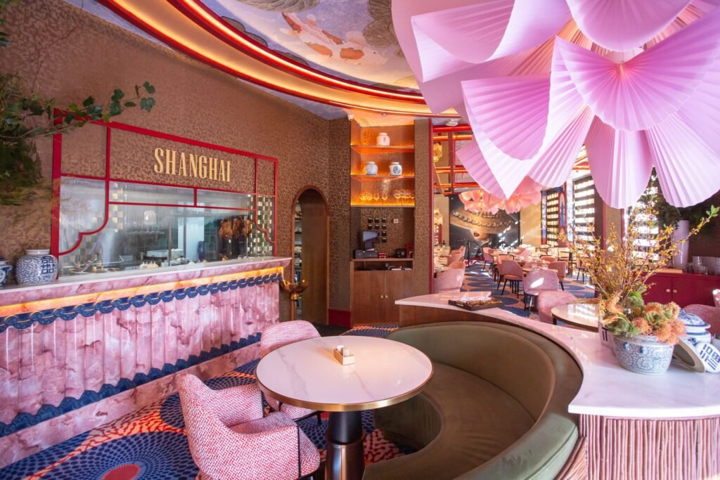 Cruzar el umbral de Gran Café Shanghai supone una inmersión instantánea en un mundo diferente. La decoración impacta con determinación: tonos rosas que evocan los interiores más cool de Shanghái y París, combinados con detalles de acabado lujoso que elevan el espacio muy por encima del concepto de restaurante convencional.