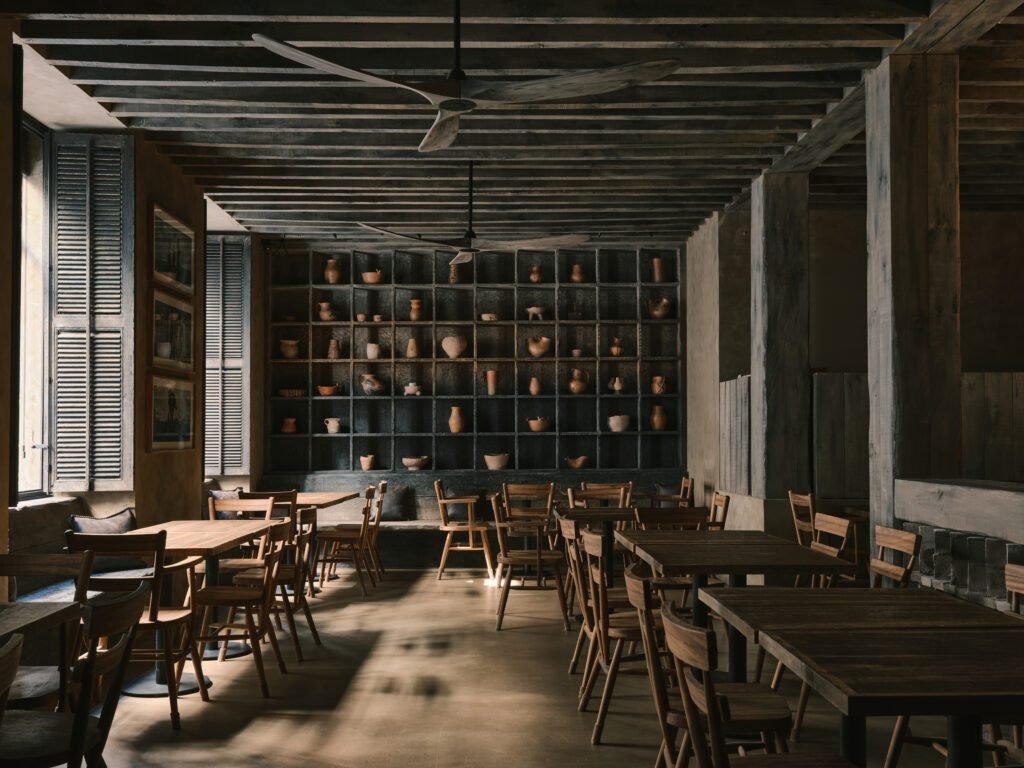 Diseñado por el estudio de arquitectura BETA 0, el interior de MAZÛL es una declaración estética construida sobre materiales naturales, texturas honestas y una atmósfera que invita a reducir el ritmo. El estilo es moderno pero singular, difícil de encuadrar en una tendencia concreta, y esa originalidad se percibe en cada detalle.