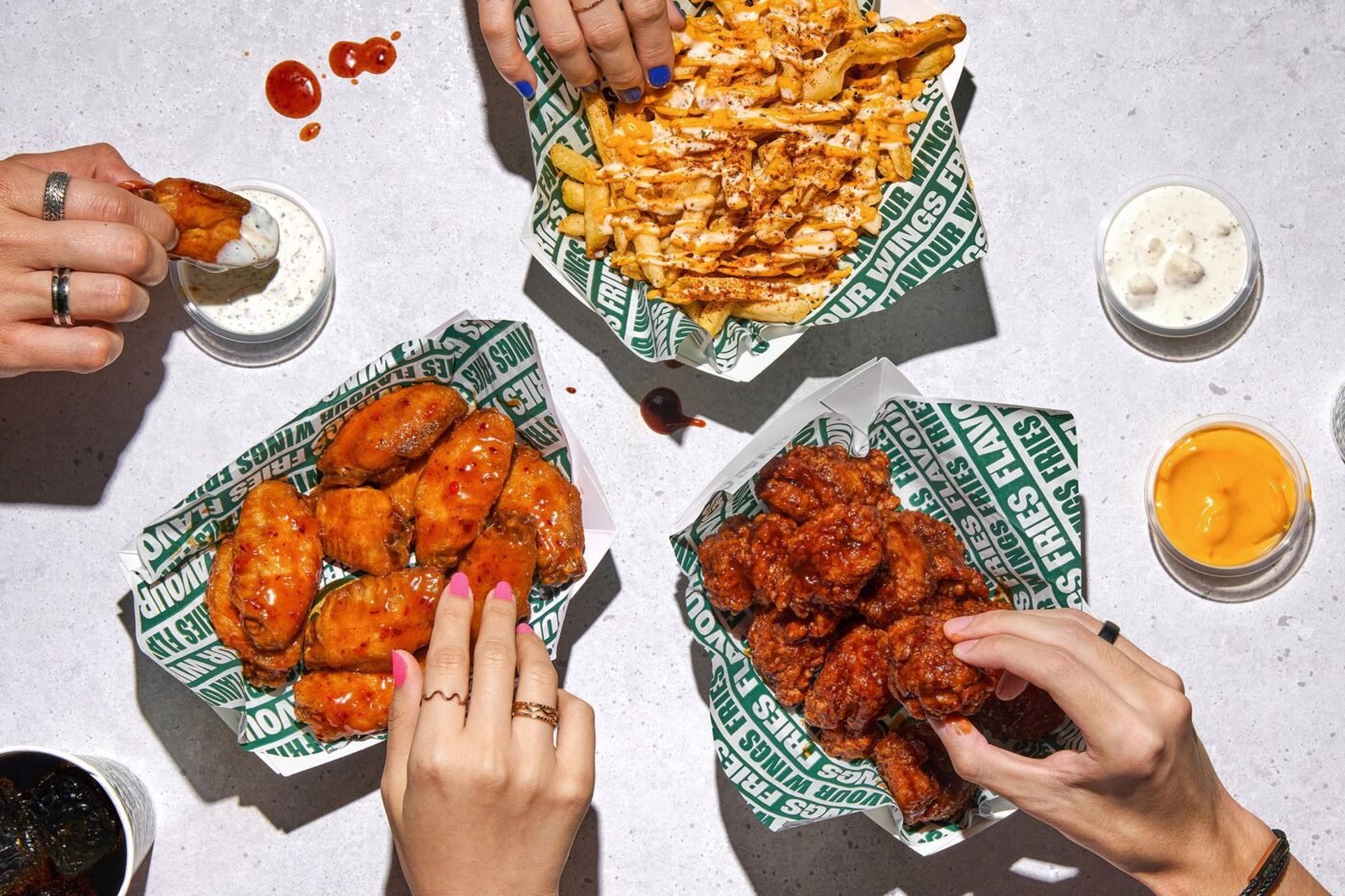 Uno de los elementos más característicos del restaurante será su variedad de 10 sazonadores y salsas diferentes, entre las que destacan combinaciones como Honey BBQ, Garlic Parmesan, Lemon Pepper o Spicy Korean Q, que permiten personalizar el sabor del pollo.
